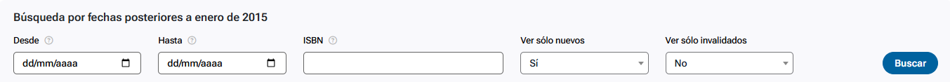 | Ver solo nuevos | Permite mostrar solo los ISBN de los que no se haya descargado nunca el PDF. |