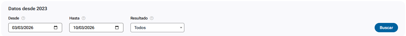 | Hasta | Fecha de fin del período de consulta de la fecha de procesado. |