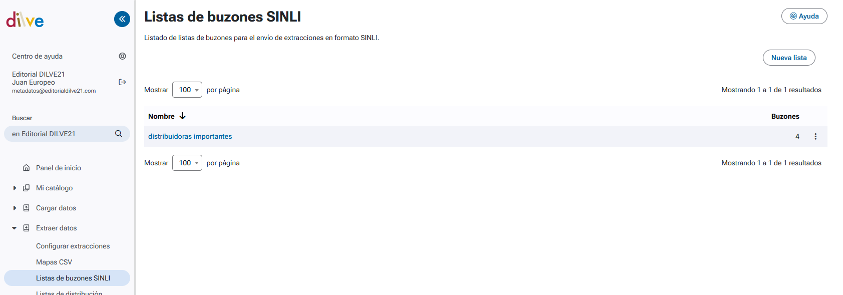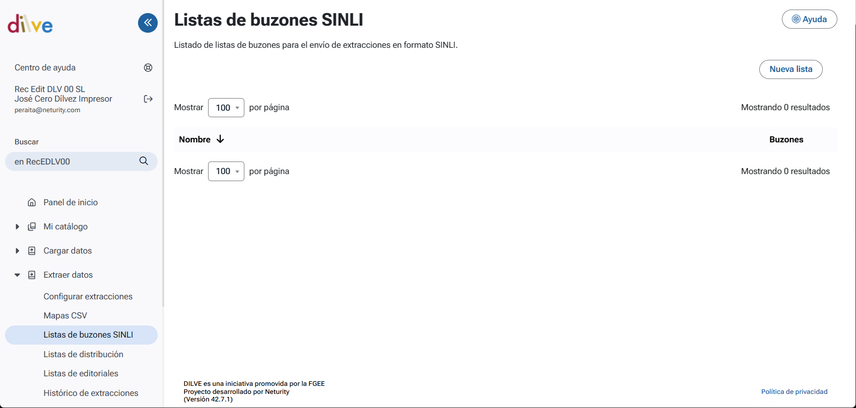 Permite gestionar listas de buzones SINLI que se podrán utilizar como destino de las extracciones en formato SINLI.