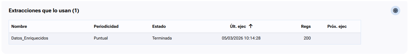 | Próx. ejec | Fecha de la próxima ejecución de la extracción, en caso de ser periódica. |