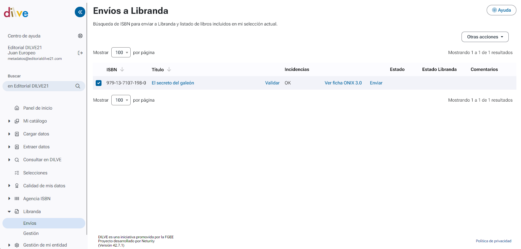 Si ya has realizado algún envío a Libranda por otros procedimientos, recuerda que estos títulos también deben estar presentes en DILVE.
