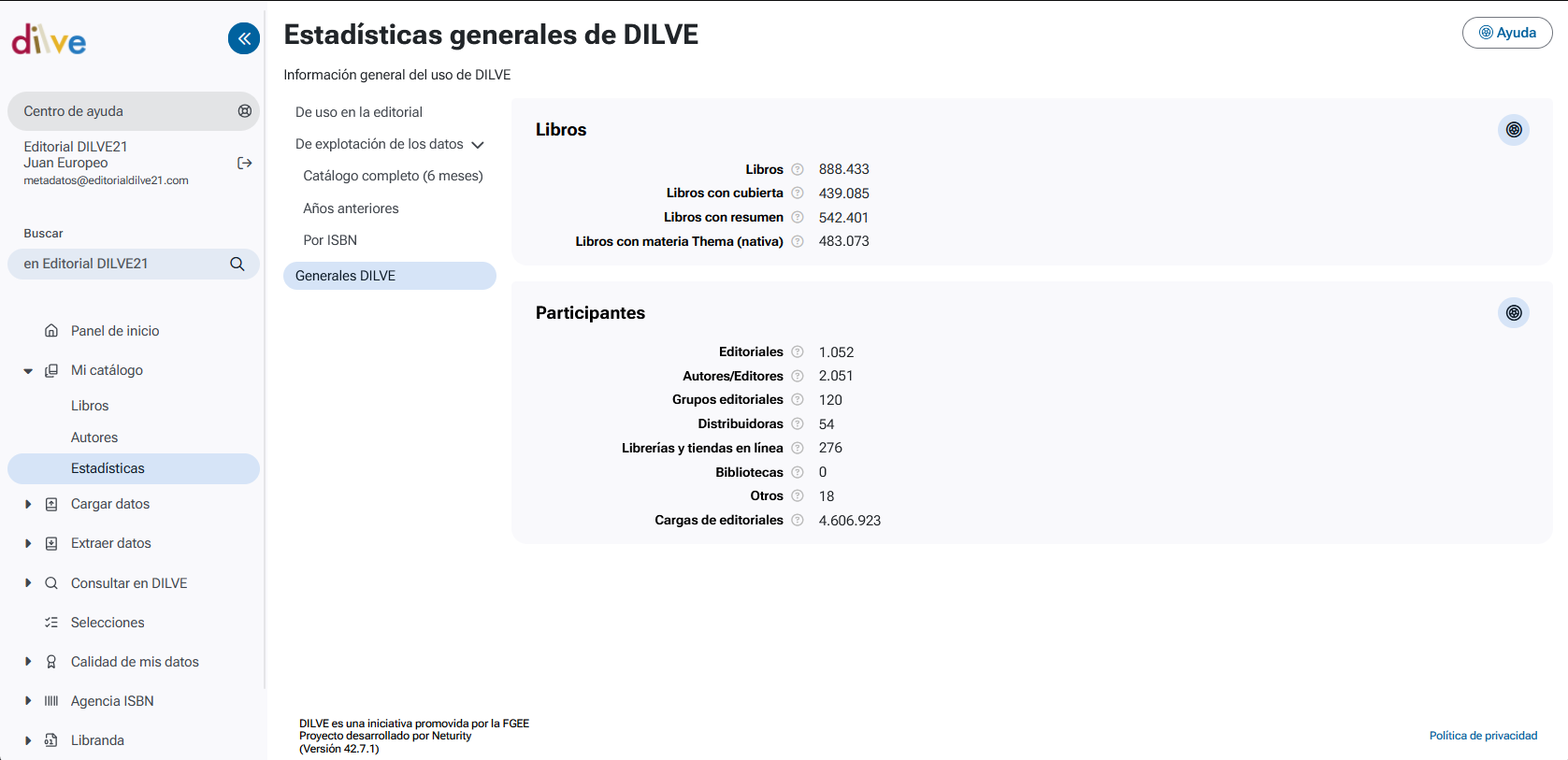 - Datos generales de DILVE: número de libros y participantes