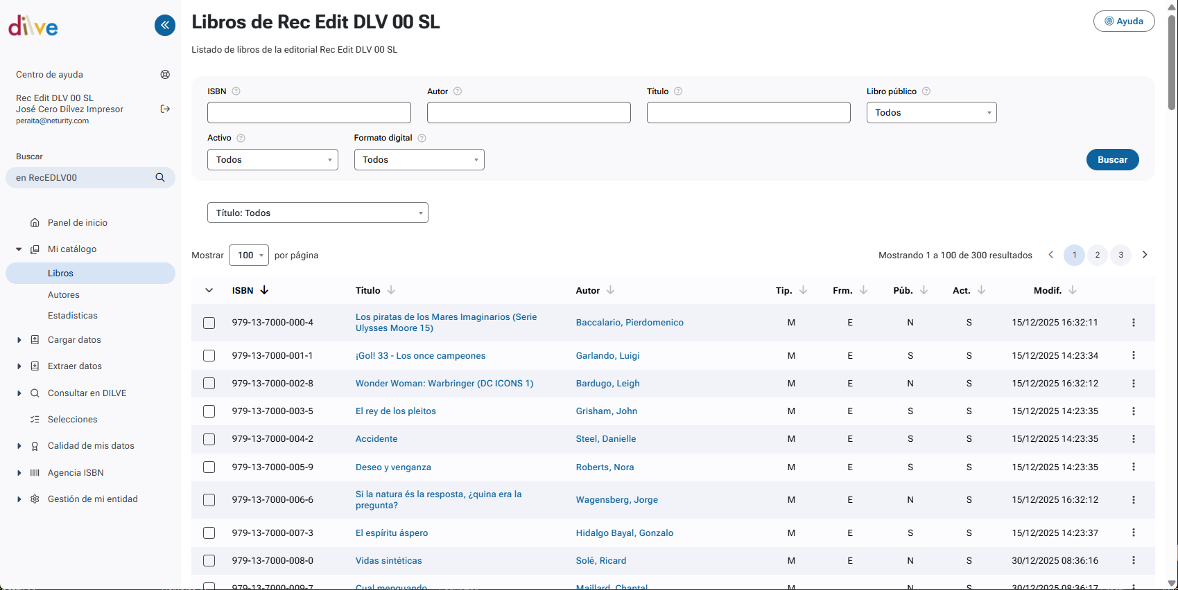 El listado se puede ordenar por cualquiera de sus columnas y, en concreto, por la de la fecha de modificación para obtener el listado de los libros más recientes o más antiguos.